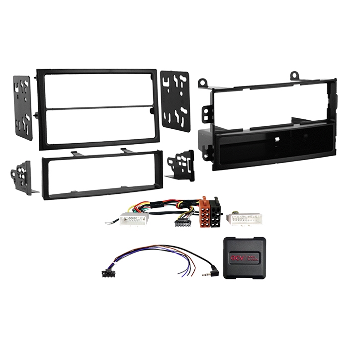 Installationssættet indeholder de nødvendige komponenter til udskiftning af OEM head unit. Afhængigt af bilens udstyr medfølger de adaptere og interfaces, der kræves for at betjene den nye radio og understøtte ratbetjening (SWC).