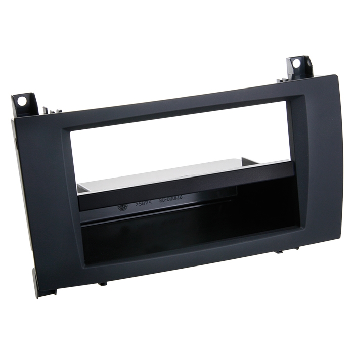 Denne 2-DIN facia-ramme med opbevaringsrum til Mercedes i sort med gummibelægning (rubberized surface) fra acv pro quality gør det muligt at montere en DIN eller Double DIN eftermarkedsradio professionelt. Mange bilproducenter installerer fabriksradioer, der er designet til at matche instrumentbrættets udseende, og denne ramme sikrer en præcis og elegant integration i bilens interiør.