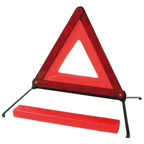 Sammenklappelig advarselstrekant til brug ved motorstop. Lovpligtig i de fleste EU-lande.