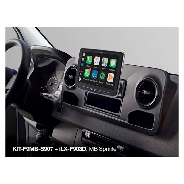 Alpine KITF9MBS907 giver dig en 9 tommer installationssæt, som gør det nemt for dig at installere iLX-F903D i en Mercedes Sprinter W907 (VS 30) fra modelåret 2018.