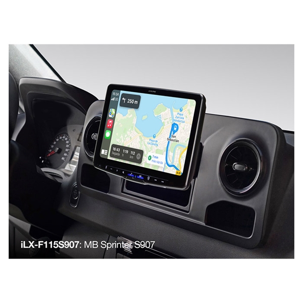 Alpine Halo 11 iLX-F115S907 giver dig en 11-tommers WXGA højopløselig berøringsskærm, som kan monteres i Mercedes Sprinter 907. Denne model er MAX version af den kendte Alpine Halo 9, med en meget større skærm end set før. iLX-F115S907 leveres med alle de nødvendige installationsdele.