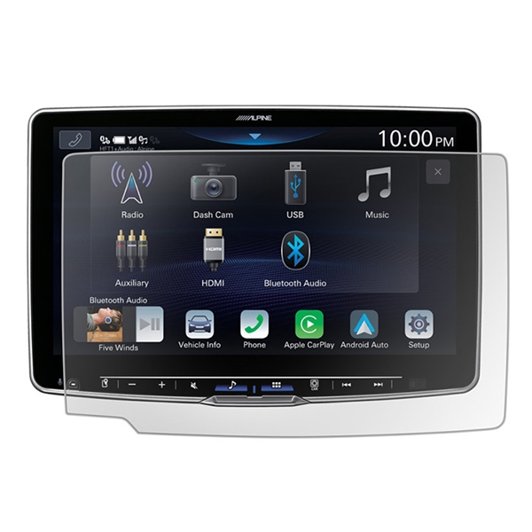 Beskyt din Alpine Halo 11 (iLX-F115D) berøringsskærm imod ridser, fingeraftryk og sollys. Denne selvklæbende og beskyttende film kan nemt påføres din Halo 11 skærm. Det forbedrer synligheden af din skærm i høj grad ved at reducere sollysrefleksioner og fingeraftryk.