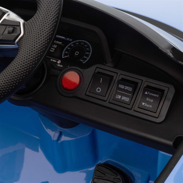 For ekstra kontrol og sikkerhed medfølger en 2.4GHz fjernbetjening, der giver forældrene mulighed for at styre bilen, indtil barnet selv er klar. Hastigheden kan justeres i flere trin, så bilen kan tilpasses barnets erfaring og alder. Lædersæde og den ergonomiske udformning sikrer en god siddekomfort under kørslen. Via USB, SD, MP3 og Bluetooth kan barnet høre musik, mens det kører – og bilen kan let oplades