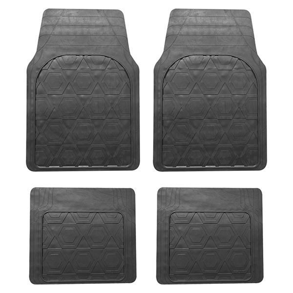 Praktisk universalt gummimåttesæt til bil, komplet til for og bag. Skæreriller gør det nemt at tilpasse måtterne til de fleste bilmodeller.