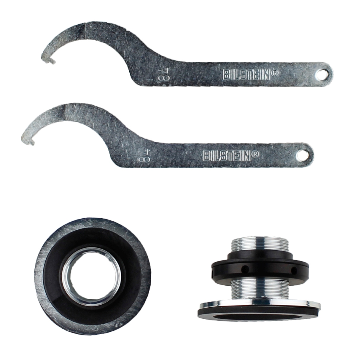 Indstilling og justering af højde med en BILSTEIN gevindundervogn er ikke noget problem, da den justerbare fjederskål og kontramøtrikken er fremstillet af anodiseret aluminium. Fjederskålen låses med en aluminiumsmøtrik i fjederbenets gevindstykke og ikke med en pinolskrue, hvilket signalerer den høje kvalitet.