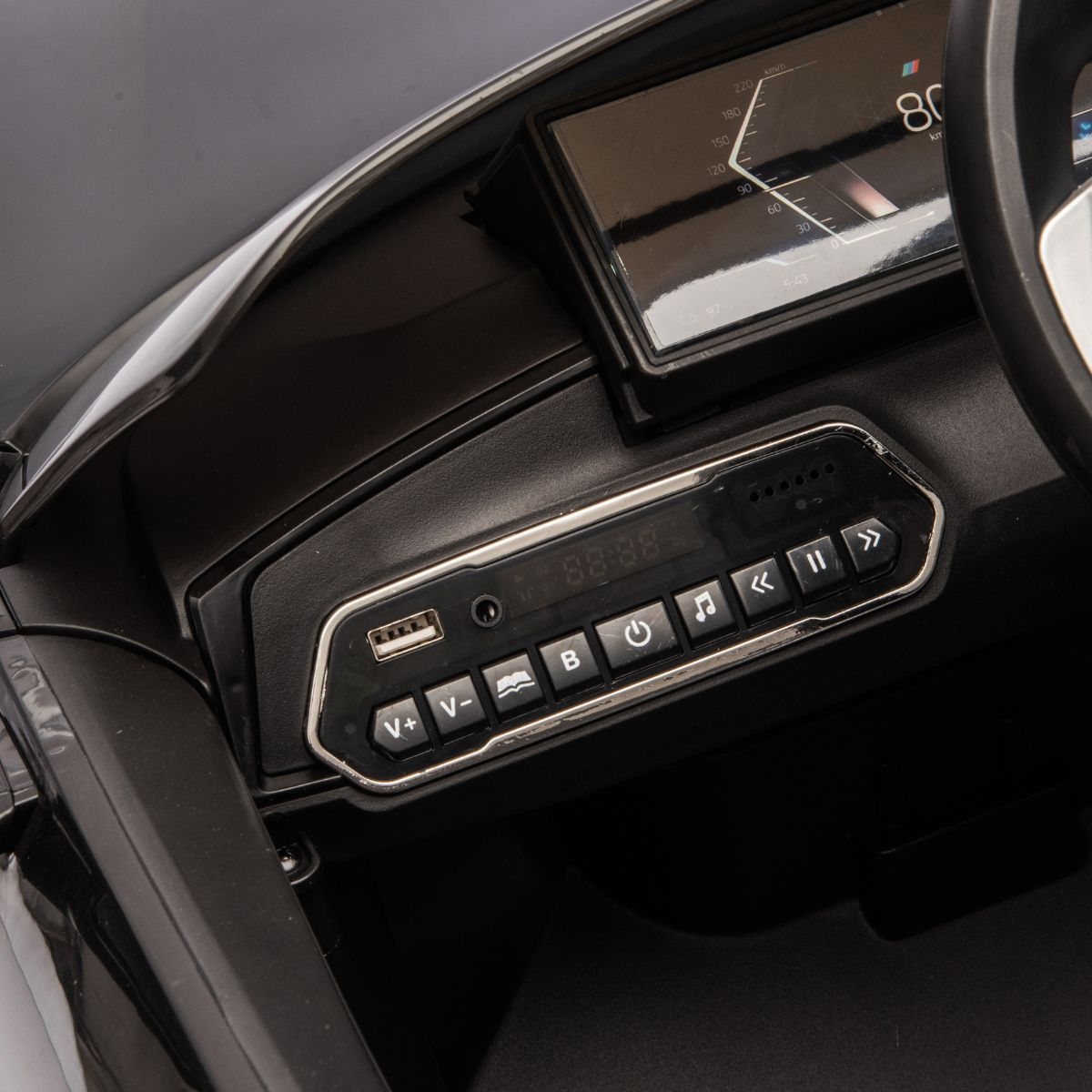 For at gøre turen endnu sjovere er bilen udstyret med et indbygget lydsystem. Børnene kan afspille deres yndlingsmusik via USB, Bluetooth, MP3 eller story-funktion og nyde en festlig og interaktiv køretur.