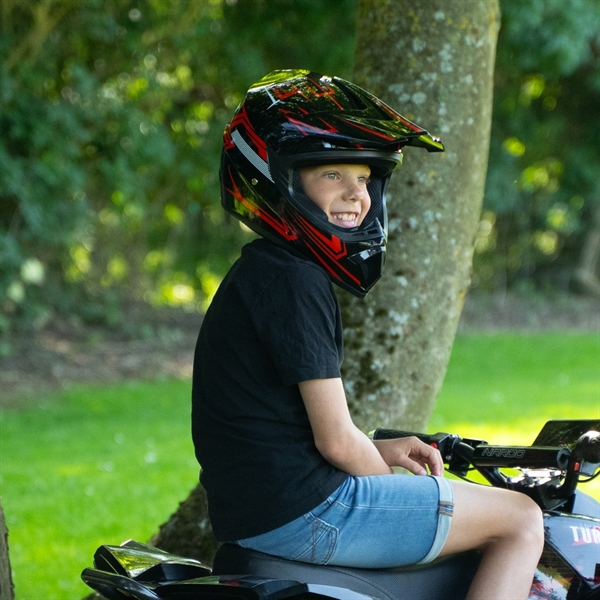 Giv dit barn en sikker og behagelig køreoplevelse med denne specialdesignede børnehjelm. Med et let og robust design er hjelmen ideel til alt fra el-ATV og mini crossere og andre fartfyldte eventyr.