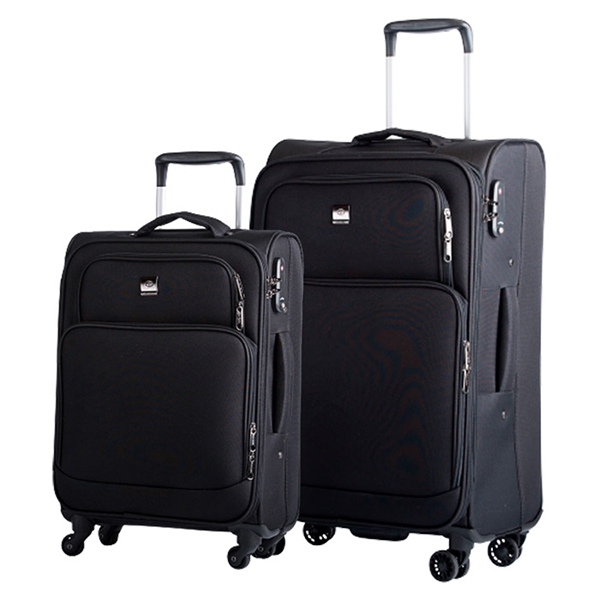 Sættet indeholder: 2 stk. kufferter kabine- og mellem størrelse i sort blødt materiale