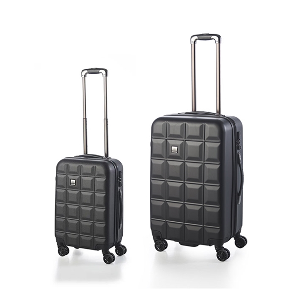 Sættet indeholder: 2 stk. kufferter kabine-, og mellem størrelse i sort ABS-materiale.