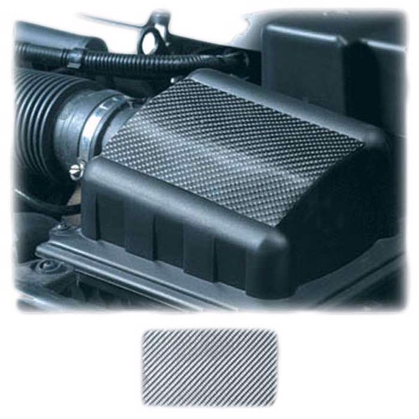 Ægte carbonplade til beklædning af interiør- og eksteriørflader f.eks benzindæksel, luftfilterkasse m.m. Denne ægte carbon er ikke så elastisk, som imiteret carbon-folie, og egner sig derfor ikke til helt små og meget kurvede udsmykninger.