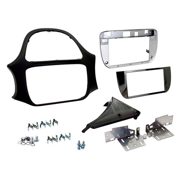 Radioramme i sort til installation af en eftermarkedsenhed i venstrehåndsstyret Fiat Punto.
