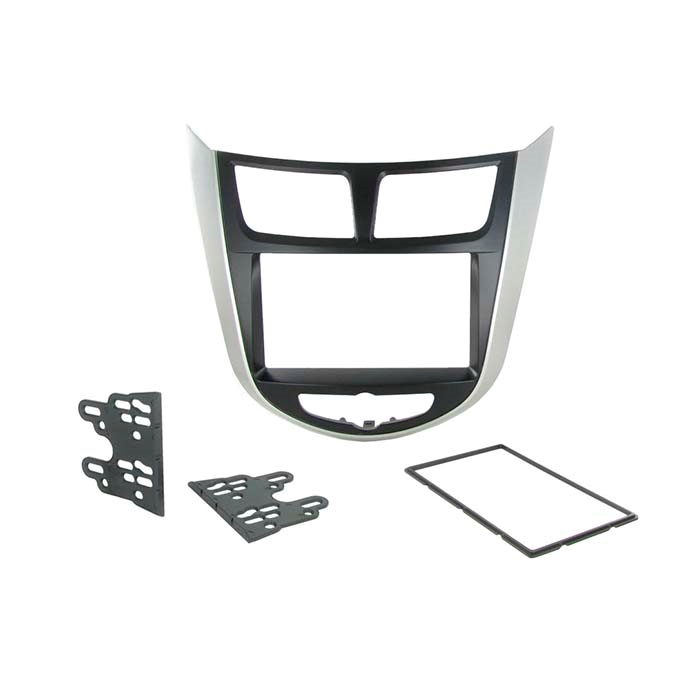 Radioramme i sort/sølv til installation af en 2-DIN eftermonteret enhed i udvalgte Hyundai-modeller.