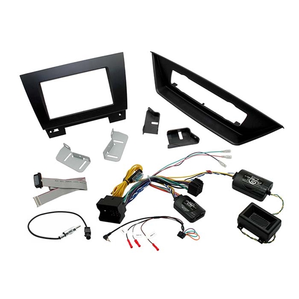 Komplet 2-DIN til BMW X1 E84 2009>2015. Kun til modeller med standard lydsystem. Rammedel til at relokere klimapanel til anden position medfølger. Består af 2-DIN ramme, ratbetjeningsinterface og antenneadapter.