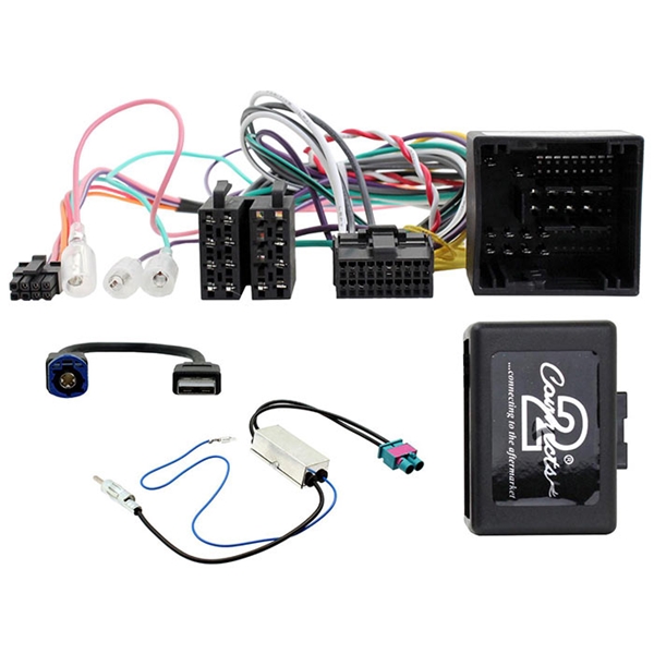 Peugeot Expert SWC, USB retention og parkering sensor interface. Designet til køretøjer med originalt berøringsskærm og med bagudvendte parkeringsfølere.