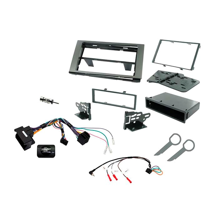 Sættet leveres med 1-/2-DIN radioramme i farven "Charcoal Grey", interface til ratbetjening, afmonteringsnøgler, antenne adapter og universelt patch kabel (CTMULTILEAD.2).