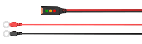 INDICATOR - Eyelet tilslutning er perfekt til opladning og kontrol af batterier, som er svære at komme til eller ligger skjult. ’Trafiklys’ systemet viser nemt og tydeligt batteriets opladningsstatus. Tilslut øjeterminalerne til batteriet, kontroller status, sæt så stikket i din CTEK oplader, hvis batteriet skal oplades. Den leveres med 2 års garanti.