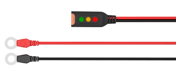 INDICATOR - Eyelet tilslutning er perfekt til opladning og kontrol af batterier, som er svære at komme til eller ligger skjult. ’Trafiklys’ systemet viser nemt og tydeligt batteriets opladningsstatus. Tilslut øjeterminalerne til batteriet, kontroller status, sæt så stikket i din CTEK oplader, hvis batteriet skal oplades. Den leveres med 2 års garanti.