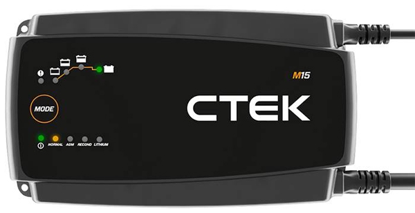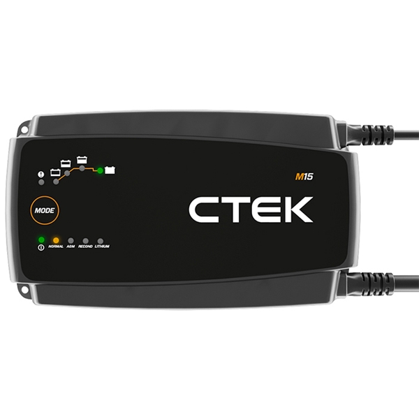 CTEK MARINELADER M15 15 AMP./ M15 lader hurtigt og effektivt mange forskellige marinebatterier. M15 er den perfekte 15 A-batterilader til alle bådejere. Den har mange forskellige funktioner ink. et Recond-trin for genoprettelse af dybt udladede batterier. Våde og Ca/Ca-batterier og en temperatursensor som optimerer opladningen hvis temperaturen afviger fra + 25°C. Den har også litiumion (LiFePO4) trin for LFP (LiFePO4) batterier. M15 Leveres med et langt kabel på 4 meter med M10 ringterminaler for en nem installation på din båd.