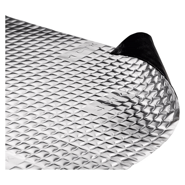 Måtten er præget med aluminiumsfolie med en tykkelse på 60 mikron som giver god beskyttelse, forstærkning af dæmpningsmaterialet og yderligere forbedring af dets akustiske egenskaber.