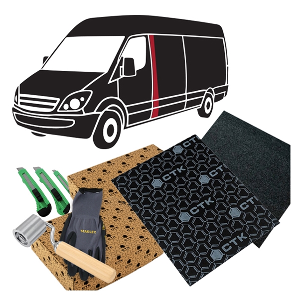 Komplet CTK Støjdæmpningspakke til bagvæggen på varevognen  - Sort Har du meget støj i din varevogn, og er du træt af ikke at kunne føre en ordentlig samtale på grund af støjen? Mange varebiler er sjældent støjdæmpet fra fabrikken, men med vores lyddæmpningspakke til bagvæggen kan du nu få dæmpet støjen betragteligt. Pakken indeholder alt hvad du skal bruge for at støj- og lyddæmpe bagvæggen i varebilen. Udover at det dæmper den irriterende støj, forbedrer det også dine højttalers ydeevne, og giver en mere behagelig oplevelse når du lytter til musik. Pakken indeholder: 2 x CTK Sandwich 8 mm støj- og lydisolering, 8 ARK, 1,48M² 1 x CTK Selvklæbende filt (sort) 1x5 meter 1 x CTK Roller 1 x Hobbykniv sæt 3 stk. 1 x Stanley Arbejdshandsker Denne støjdæmpningspakke indeholder nok materiale til at støjdæmpe bagvæggen / Varerumsadskillelse på de mest gængse varebiler som: Fiat Ducato, Peugeot Boxer, Citroen Jumper, Renault Master, Toyota Proace, Peugeot Expert, Citroen Jumpy, Mercedes Vito, VW Transporter, Ford Transit, VW Crafter, Mercedes Sprinter, MAN TGE og Iveco Daily. I pakken medfølger handsker, hobbykniv og CTK Rolle til påføring.