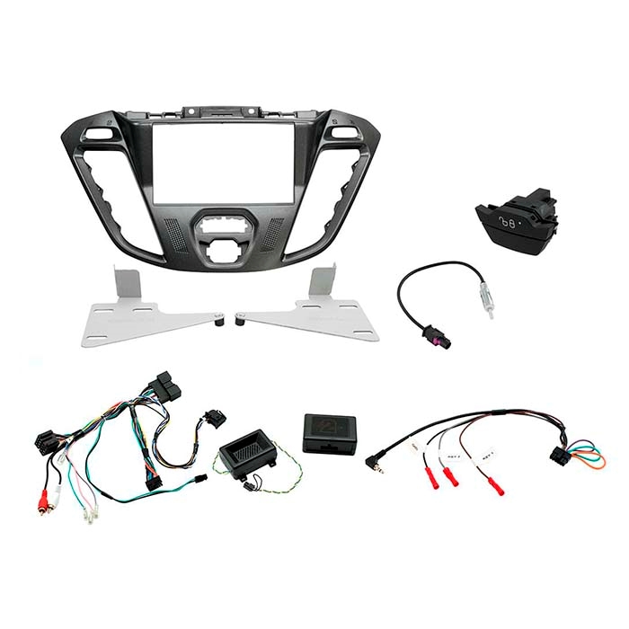 Sættet leveres med en 2-DIN "Pegasus" radioramme, CAN-Bus interface til ratbetjening, Fakra antenne adapter, universelt patch kabel (CTMULTILEAD.2) og dørlås-/advarselskontakt. Bemærk, at der kræves yderligere OEM-dele fra Ford: 1799698 passager airbag lampe (hvis passager airbag er monteret) eller 1832265 kortholder (hvis passager airbag ikke er monteret).