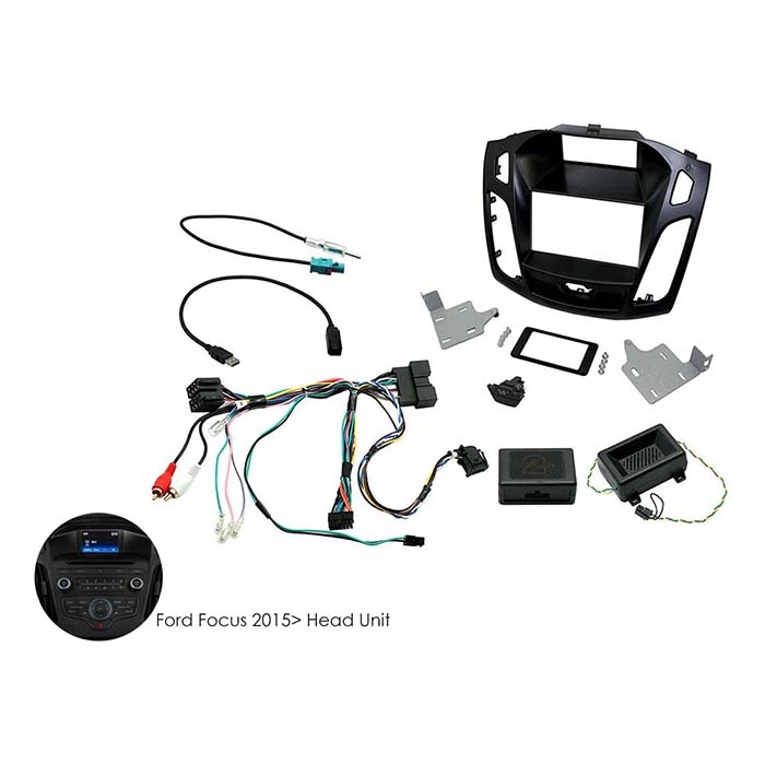 Komplet 2-DIN til ny Ford Focus 2015& (faceliftet model). Består af ramme, ratinterface, antenneadapter, samt CTMULTILEAD.2.