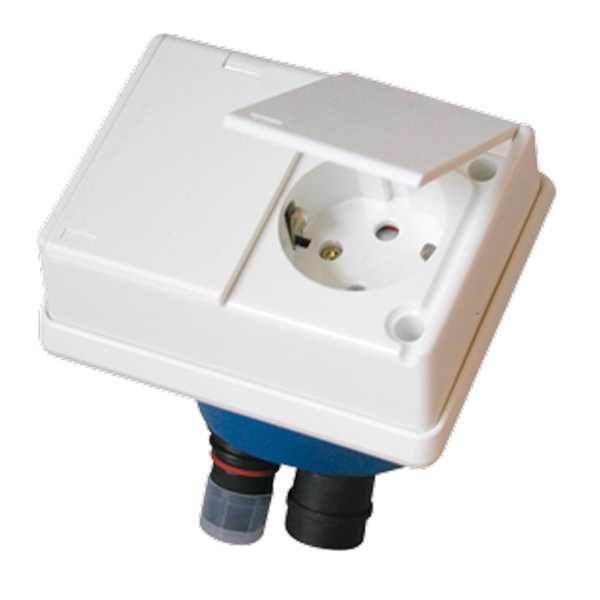 Hvid dobbeltudtag med fjederbelastet låg beregnet til indbygning og tilpasset DEFA PlugIn system.