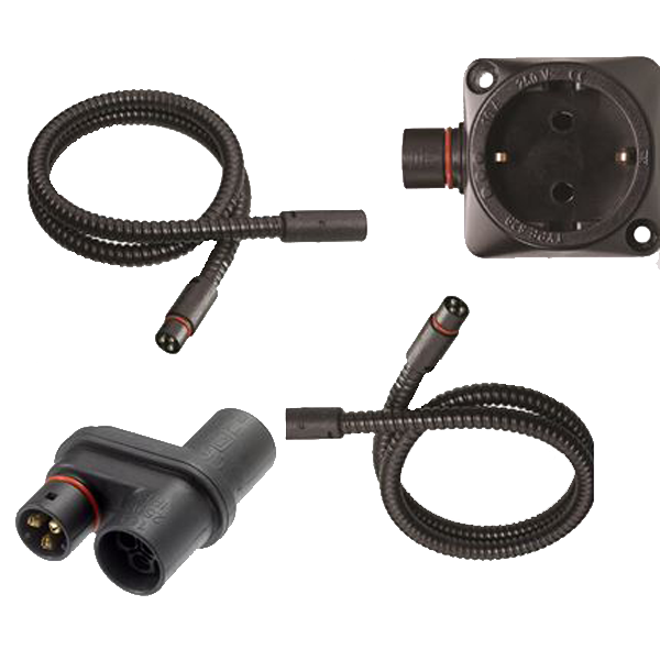 DEFA forgreningssæt med stikkontakt. Indeholder: 1 stk. DEFA PlugIn forlængerledning 0,5 meter. 1 stk. DEFA PlugIn forlængerledningå1,0 meter. 1 stk. DEFA PlugIn Y-stykke. 1 stk. DEFA PlugIn stikkontakt.