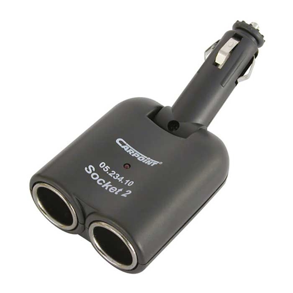 Dobbelt strømudtag til 12 volt. med 5 amp. sikring.