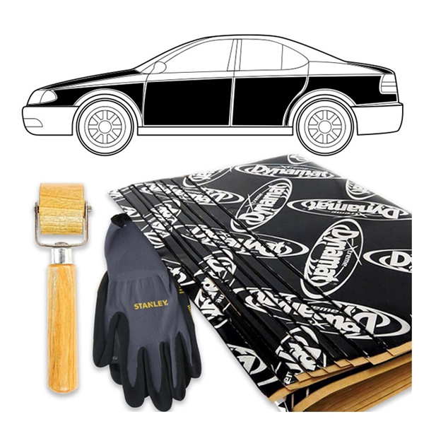 Komplet fuld pakke uden tag til at lyddæmpe din microbil Sættet indeholder alt hvad du skal bruge for at støj- og lyddæmpe din bil og mindste støj ved kørsels. Ligeledes kan sættet varme- og kuldeisolere bilen og dermed holde varmen inde i bilen om vinteren og holde sommervarmen ude om sommeren. Udover at Dynamat Xtreme dæmper irriterende støj, forbedrer det også dine højttalers dynamiske rækkevidde og giver en mere behagelig oplevelse når du lytter til musik. Sættet indeholder: 1 x Dynamat Economy Wood Roller 1 x Stanley Arbejdshandsker 7 x Dynamat Xtreme Hex Pack, 1 ark, 0,37m² Sættet giver 2,59m² selvklæbende vibrationsdæmpemateriale til montering i hele bilen undtagen himlen/loftet. I sættet medfølger handsker og Dynamat Economy Wood Roller til påføring.