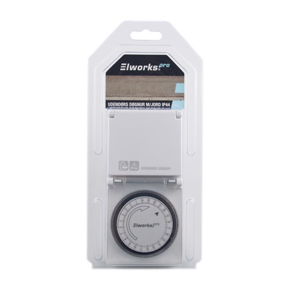 Elworks døgnur mekanisk IP44 udendørs m/jord (Udgået)
