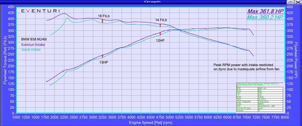 Eventuri Scoops er designet til at sidde direkte bag frontgrillene og fange så meget luft som muligt, med en jævn kurve mod kanalåbningen for effektiv luftstrøm. Følgende video forklarer designfunktionerne bag deres M2-scoop, som direkte gælder for B58-scoopen. En effektiv koldlufttilførsel til filteret er en essentiel del af deres design. Varmeskjolde alene er ikke nok – især da motoren har manifolden lige ved indsugningen.