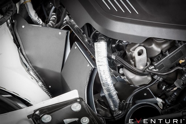 Der er lagt stor vægt på varmeskjoldet, da indsugningen sidder tæt på udstødningsmanifolden. Eventuri brugte et dobbeltlags hovedskjold med sølv på udstødningssiden og sort på indsugningssiden. Sølvlageret reflekterer strålevarme, mens det sorte lag absorberer det. Luftgabet mellem lagene isolerer mod ledende varme. Det sekundære skjold kan ses bag turboens indløbsrør. Under test opnåede Eventuri et temperaturfald på over 90 grader C, som ses i termovideoen. Skjoldets effektivitet giver lavere indsugningstemperaturer under kørsel.