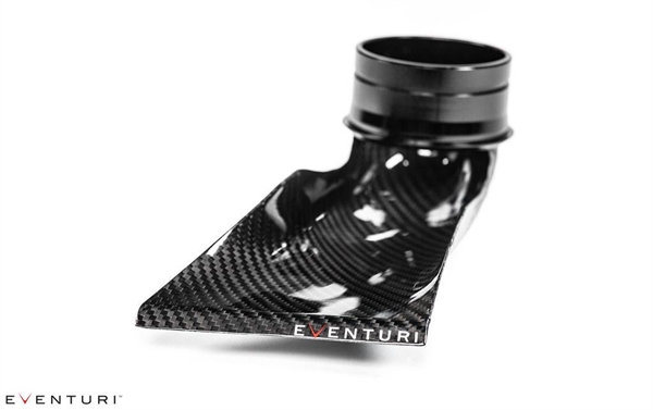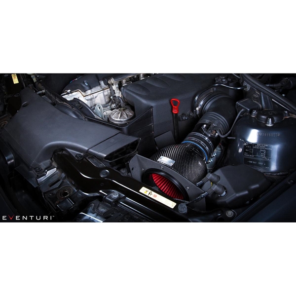 Fremstillet af 100 % prepreg kulfiber af højeste kvalitet, er håndværket på huset uden sidestykke. Dette omslutter filteret og er forbundet til en anodiseret aluminiumsindløbskåbe for at sikre en jævn luftstrøm. Selve filteret er en dybt foldet, højstrøms dobbeltkegle konfiguration, som er tør for at undgå at beskadige MAF-sensoren. Endelig er samlingen forbundet til et aluminiums varmeskjold, som effektivt afskærmer indsugningen fra varme i motorrummet og indfanger den omgivende luft, der ledes fra scoopen. Bemærk også gummipakningen på monteringen af varmeskjoldet – dette er til lygtemodulet, så det forbliver i den rigtige højde – små detaljer er vigtige!