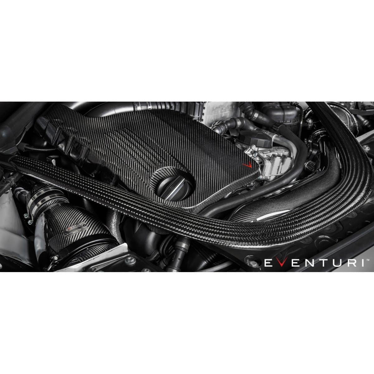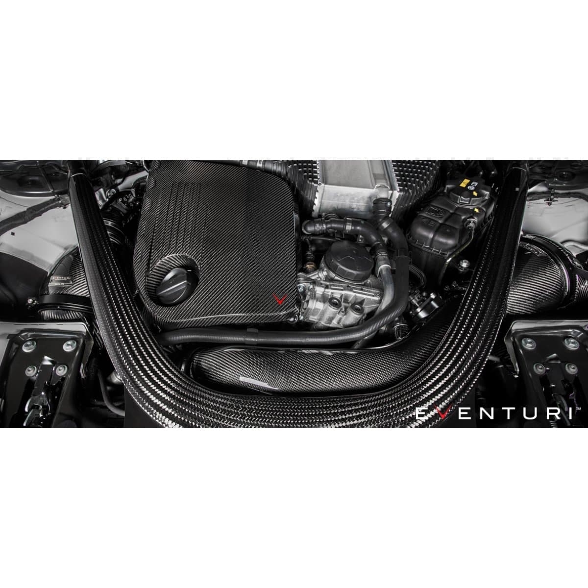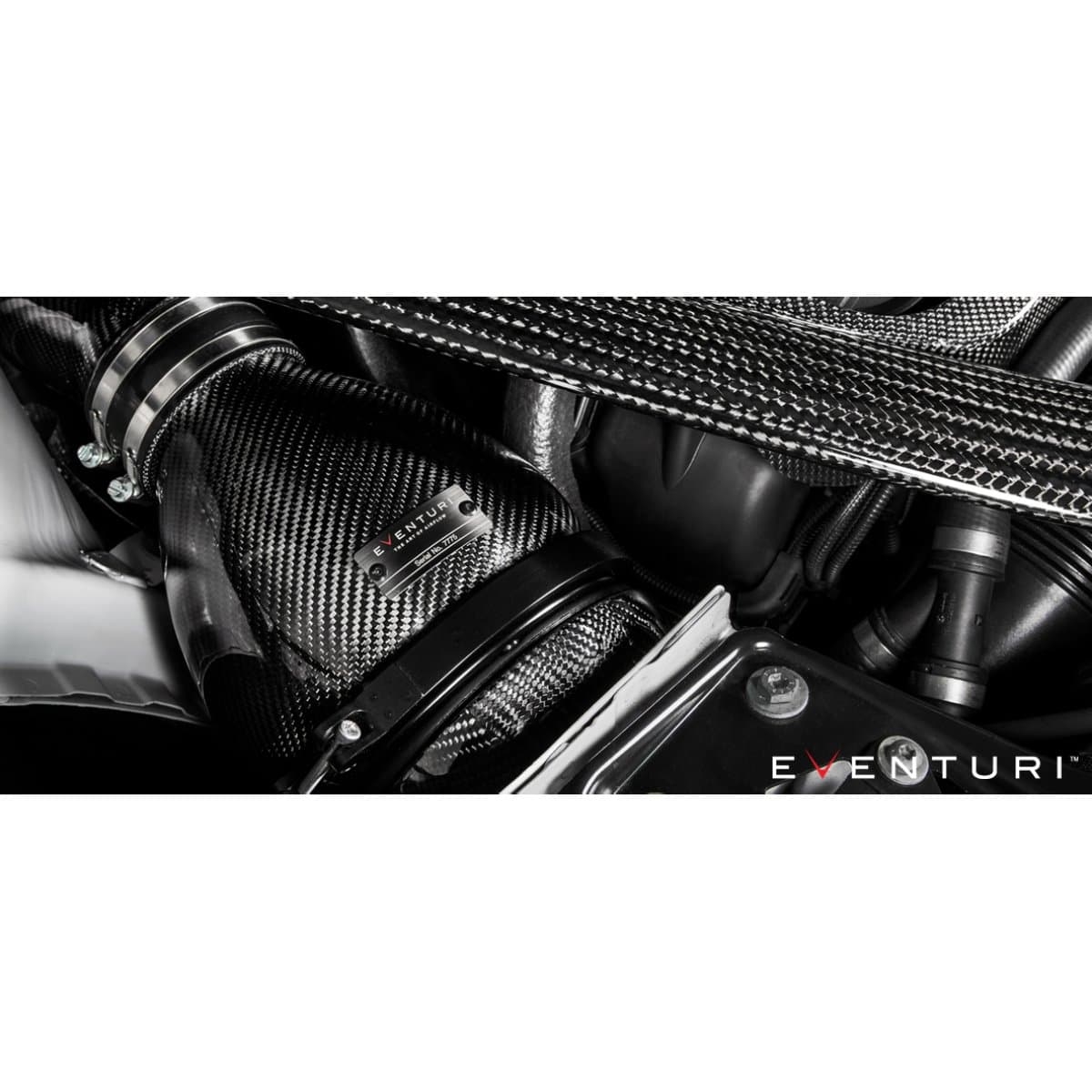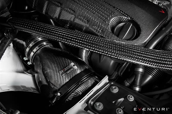 deres indsugningsrør er igen fremstillet af 100 % prepreg kulfiber. Hvert rør har en integreret MAF-sensorholder, som er CNC-fræset af aluminium. Det kortere venstre rør overfører jævnt luftstrømmen fra kulfiberhuset ned til turboens indsugningsrør. Det længere højre indsugningsrør skal passere ventilatorafdækningen og afstivningsbøjlen. For at gøre dette anvendte Eventuri samme princip som originalrøret ved at ændre tværsnittet fra en cirkel ved turboens indsugningsrør til et ovalt for at give plads over afdækningen og derefter tilbage til en cirkel ved filterhusets ende. Eventuri sikrede, at disse overgange var gradvise for ikke at forstyrre luftstrømmen. Derudover bevarede Eventuri samme tværsnitsareal for at holde hastigheden gennem røret konstant.