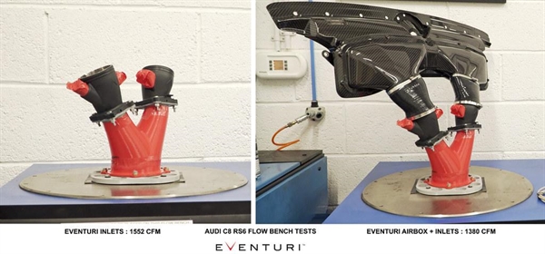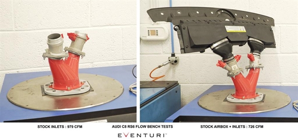 Det første mål blev nået ved at udnytte alt tilgængelig plads i RS6 motorummet, som var stærkt begrænset af motorhjelmens underside. deres løsning var at redesigne hele airboxen, hvilket maksimerede volumen, øgede indløbsåbningernes størrelse og skabte en mere gunstig filtervinkel mod turboerne. Desuden har Eventuri dramatisk øget størrelsen af turboernes indløb med op til 85 % målt på tværsnitsarealet ved åbningerne. Det andet mål blev nået ved at designe et organisk formet system med et specialfremstillet afrundet panelfilter for at sikre, at luftstrømmen ikke indeholdt skarpe hjørner og dermed tillade at strømmen forbliver laminar. Med glatte overgange fra filteret til turboindløbene minimerer deres indsugning dannelsen af turbulens, og turboerne kan fungere mere effektivt. Eventuri samarbejdede med BMC om et skræddersyet filterelement for at sikre, at filtreringsarealet er så stort som muligt, samtidig med at luftstrømmen holdes ren.