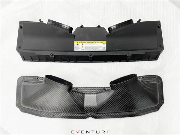 Eventuri har fuldstændig redesignet hele airboxsystemet inklusiv basen som filteret sidder i. Eventuri har kombineret den nederste panel med den nedre airbox og øget volumen af dette område for at hjælpe med at øge den samlede strømning. Basen er desuden designet til at lade filteret sidde i en mere gunstig vinkel til turboindløbene. Hvor standard airboxen har et 90 graders knæk fra filter til indløb, har deres airbox en mindre abrupt vinkel, og dette tillader en glattere strømvej.