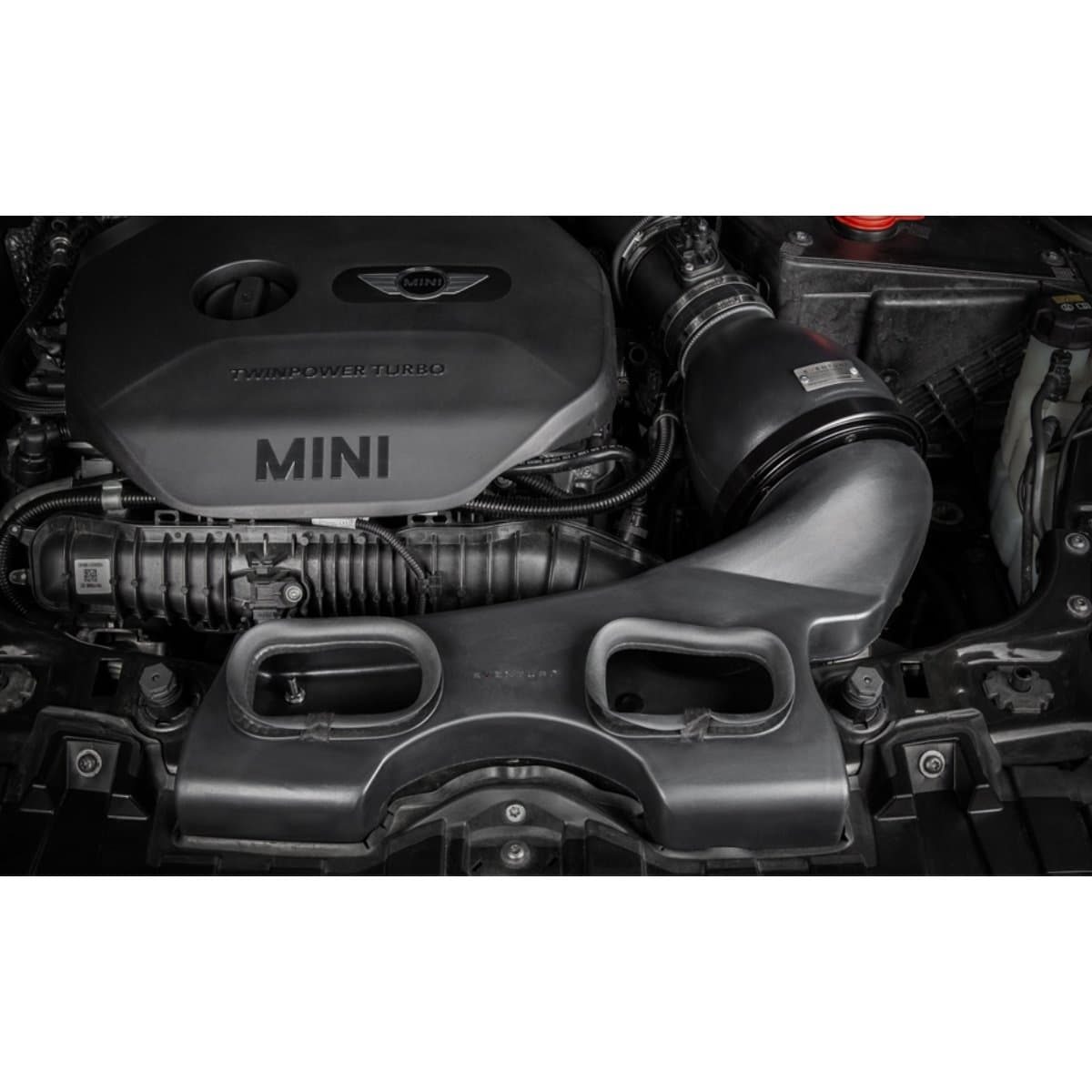 F56 MINI Eventuri-indtagssystemet er endnu et eksempel på deres "Complete System"-princip. Det er et lukket system, som sikrer, at turboen ikke trækker varm luft fra motorrummet, men forbedres med en funktionel motorhjelms-indsugning, der tvinger omgivelsesluft ind i indsugningskanalen. Denne kanal har et større indvendigt volumen end standardversionen og trækker også luft fra den originale placering over radiatoren. Kombinationen af et lukket system med en luftindsugning resulterer i lavere indsugningstemperaturer end standard luftfilterkassen og undgår varmepåvirkning, som ofte er et problem, især på kraftigere MINIs. For at sikre det mest jævne flow muligt bruger Eventuri deres patenterede filterhus koblet med et CNC-fræset MAF-rør for at give den bedst mulige luftstrøm til turboen.