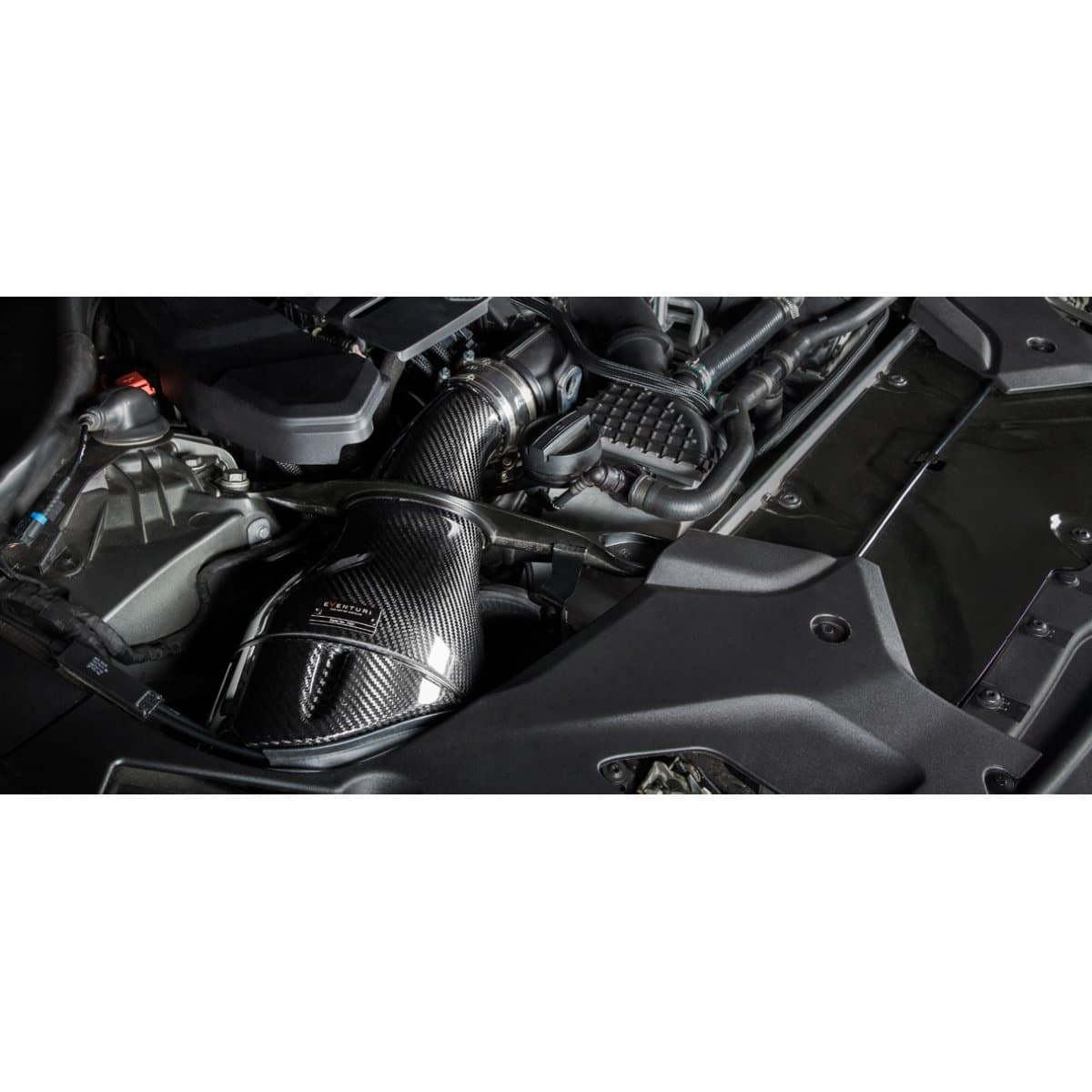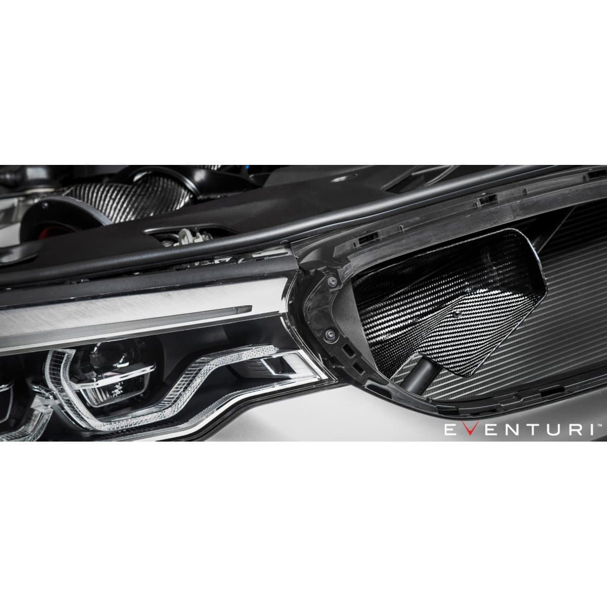 Filterhusene består af deres specialdesignede generation 2-filtre, aluminiums-indløbskegler, kulfiberskjolde, kulfiberpods og integrerede rør. Kulfiberpoddene dækker de omvendt monterede filtre og former luftstrømmen jævnt ned til de originale turboindløbsrør. Dette er en nøglefunktion i designet, hvor Eventuri har fjernet behovet for en bølgeformet gummislange mellem luftboksen og turboens indløbsrør. Filterhusene og de integrerede rør strækker sig hele vejen til de originale turborør og kan bevæge sig som én enhed med motoren gennem afstivningsbøjlerne. Resultatet er en glattere luftvej og mindre træk, hvilket betyder, at turboerne fungerer mere effektivt.