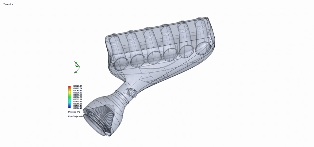 CFD-OPTIMERET. Den overordnede form på airboxen blev optimeret gennem flere iterationer med CFD-simuleringer for at sikre, at tragtene havde tilstrækkelig luftstrøm uden at lide under begrænsninger eller turbulens.
