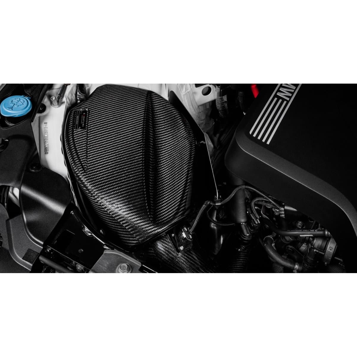 Fremstillet af Prepreg kulfiber, tjener luftboksen to formål – at forsegle filteret mod varme fra motorrummet og at levere en dobbelt koldlufttilførsel. Da luftboksen er placeret ved siden af udstødningsmanifolden, er det afgørende, at filteret er fuldt forseglet, så Eventuri designede luftboksen til at omslutte filteret og samtidig give et stort indvendigt volumen. For at forsegle indsugningsrøret har Eventuri designet en laserskåret plade med en gummitætning, som fastgøres til luftboksen. Indsugningsrøret passerer gennem pladen, og gummitætningen sikrer, at opvarmet luft ikke trænger ind i luftboksen. For yderligere at minimere varmesugning er der et ekstra varmeskjold med et guldreflekterende lag på udstødningsmanifoldens side, som effektivt modvirker strålingsvarme.