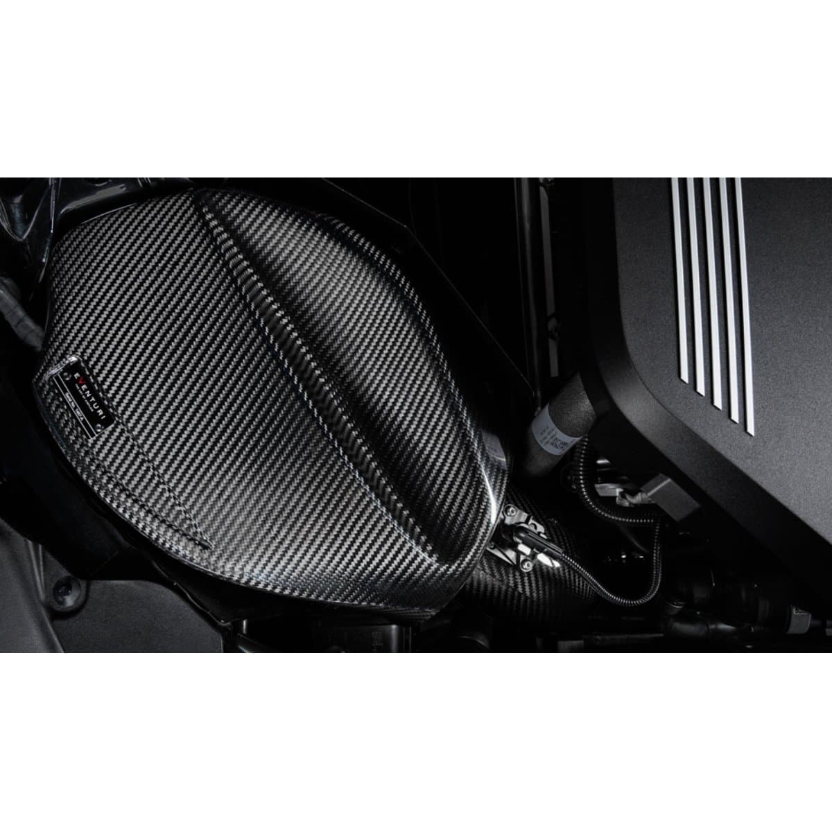I G20 er indsugningssystemet placeret ved siden af udstødningsmanifolden, som hurtigt opvarmer motorrummet. Høje temperaturer er skadelige for motorens ydeevne, da turbinen skal opbygge boost med opvarmet, mindre tæt luft, og derfor er den eneste måde at sikre, at IAT’er holdes så lave som muligt på, et fuldt forseglet indsugningssystem. Dette resulterer dog i en begrænsning, da der kun er en original lufttilførsel til at trække luft ind fra. Under udviklingen bemærkede Eventuri en ekstra åbning mod hjulkassen og udnyttede dette ved at tilføje en sekundær lufttilførsel til deres luftboks. Derudover har deres forseglede luftboks også et varmeskjold med guldreflekterende overflade for at minimere den strålende varmeoverførsel fra udstødningsmanifolden. For at maksimere volumen gjorde Eventuri luftboksen så stor som muligt med en udfræsning for potentielle stagbøjler. Den originale snoede indsugningsslange er erstattet med et glat carbonrør, som også har større indvendigt volumen med en startindvendig diameter på 111 mm (4,4"), som glider ned til at matche turboindgangen. Røret giver en jævn vej fra filteret til turboindgangen. Endelig bruger Eventuri et specialfremstillet højstrøms tørt keglefilter, som er ISO-testet for filtreringsydelse og har et større filterareal end det originale filter.