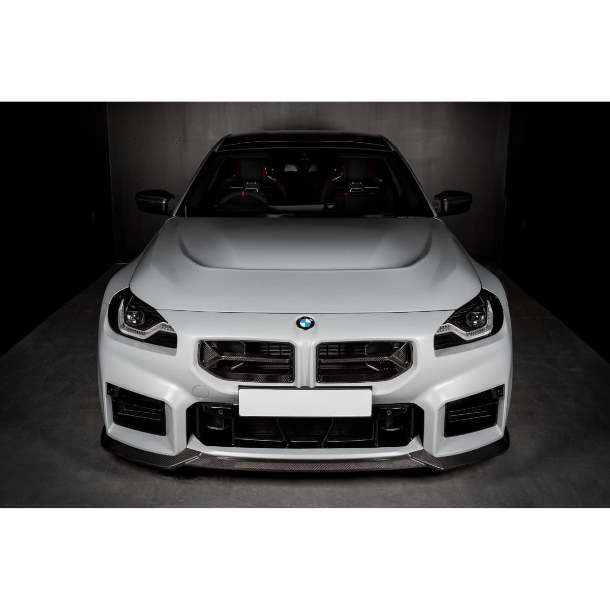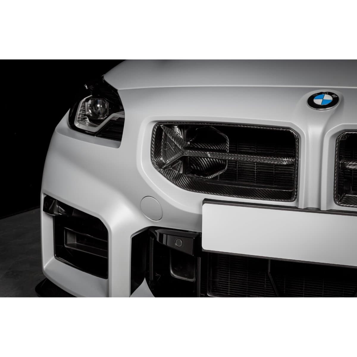 Disse scoops er designet til at lede omgivende luft ind i indtagssystemet, hvilket hjælper med at opretholde en stabil indsugningstemperatur under kørsel. Fremstillet af præpreg kulfiber og fås i både blank og mat finish, giver disse scoops også et visuelt løft til bilens front. Designet til at komplementere M2’ens frontgeometri, har Eventuri taget højde for de kantede former og skabt et integreret look.