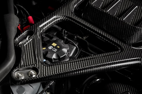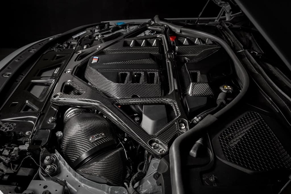 Eventuri G8x carbon strut brace er mere end blot en funktionel del – den løfter æstetikken i motorummet og indrammer indsugning og motordæksel smukt.