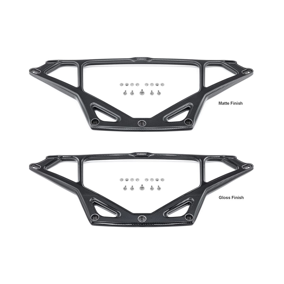 Eventuri G8x Strut Brace er fremstillet af prepreg kulfiber og specialfremstillet hardware i 316 rustfrit stål. Hvert sæt indeholder: