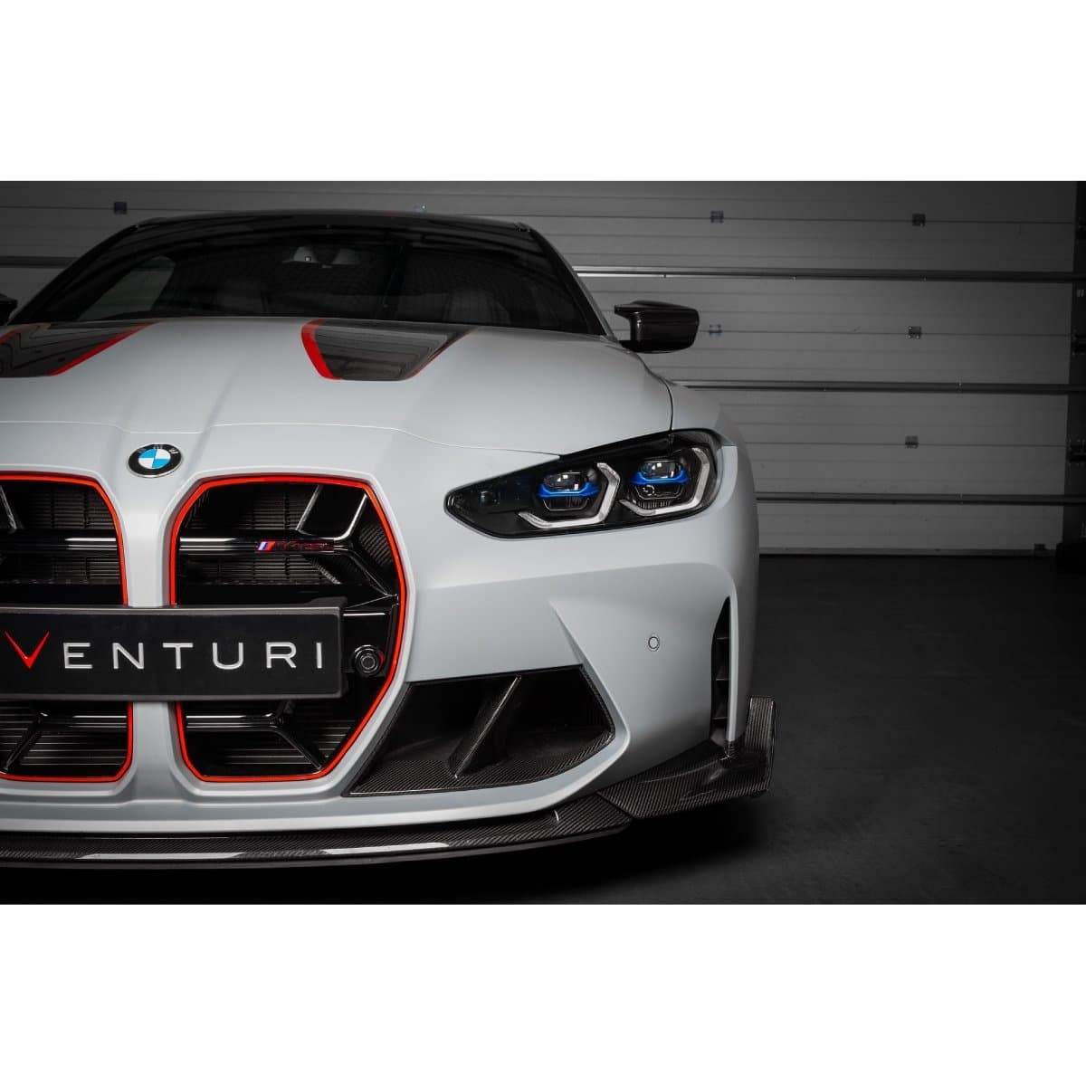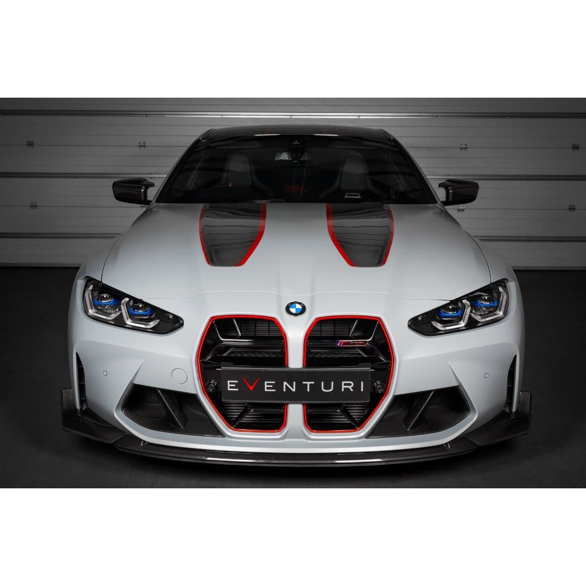 Disse scoops er designet til at lede omgivende luft ind i indtagssystemet og hjælper med at opretholde en stabil indsugningstemperatur under kørsel. Fremstillet af præpreg kulfiber og fås i både blank og mat finish, giver disse scoops også et æstetisk løft til bilens front. Designet til at komplementere CSL-stil grillen, har Eventuri taget højde for grillens kantede geometri og integreret de samme former i scoopsene for et sammenhængende udtryk. Selv med standardgrillen matcher den trekantede scoop-geometri det nederste bremseindtag på kofangeren og skaber en harmonisk front.