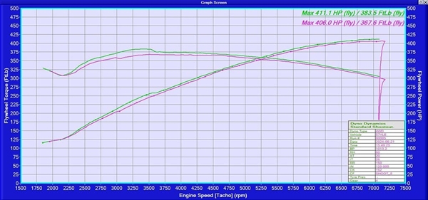 Denne indsugning er blevet uafhængigt testet på dyno af DREAM Automotive i Storbritannien. Testene blev udført back-to-back mod den originale luftboks, og flere målinger blev foretaget med hver konfiguration. Eventuri tog de bedste resultater fra den originale luftboks og de bedste fra Eventuri-systemet. Dyno-resultaterne viser en konsekvent gevinst gennem hele omdrejningsområdet, hvilket kan tilskrives det højere luftflow fra filtrene og det optimerede design af luftboksens låg. Ydelsesforøgelsen mærkes på vejen som bedre respons både ved delgas og fuld gas, hvor bilen trækker mere ivrigt op mod rød streg.