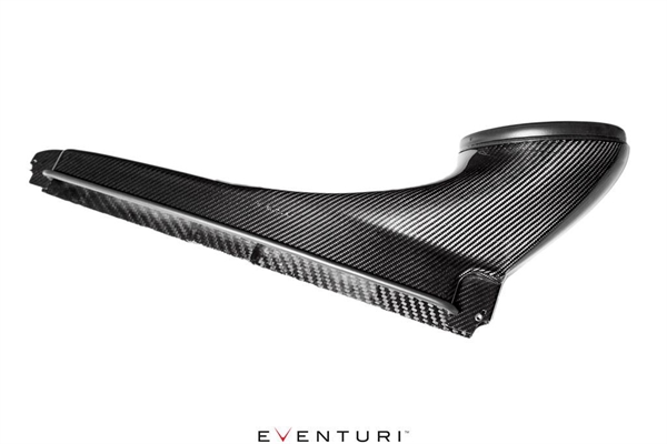 Kanalen leder omgivende luft fra slam‑panel‑området til filterhuset. Den passer ind i OEM kanal‑systemet og overgår glidende til den cirkulære filterhuseform. For at sikre en god tætning mod motorrummevarme – har den også en fleksibel gummikant omkring åbningen som presser mod filterhusene og danner ønsket forsegling men tillader at huset bevæger sig med motoren. Da dette design er beregnet til at støtte højtydende opbygninger, fandt Eventuri at de originale åbninger i slam‑panelet kunne forårsage en begrænsning ved højt flow‑behov. Så Eventuri hævede topfladen af kanalen og skabte en åbning over slam‑panelet som kan trække kold luft fra bag motorhjelmen. Denne ekstra åbning svarer til et hul med diameter over 7" og fjerner helt restriktionen i den oprindelige kolde luftindsugning. Stage 3 kanalen er designet til at have maksimal intern volumen mulig indenfor den givne geometri af motorrummet. Dette sikrer, at filterhuset kan suge med minimal modstand.