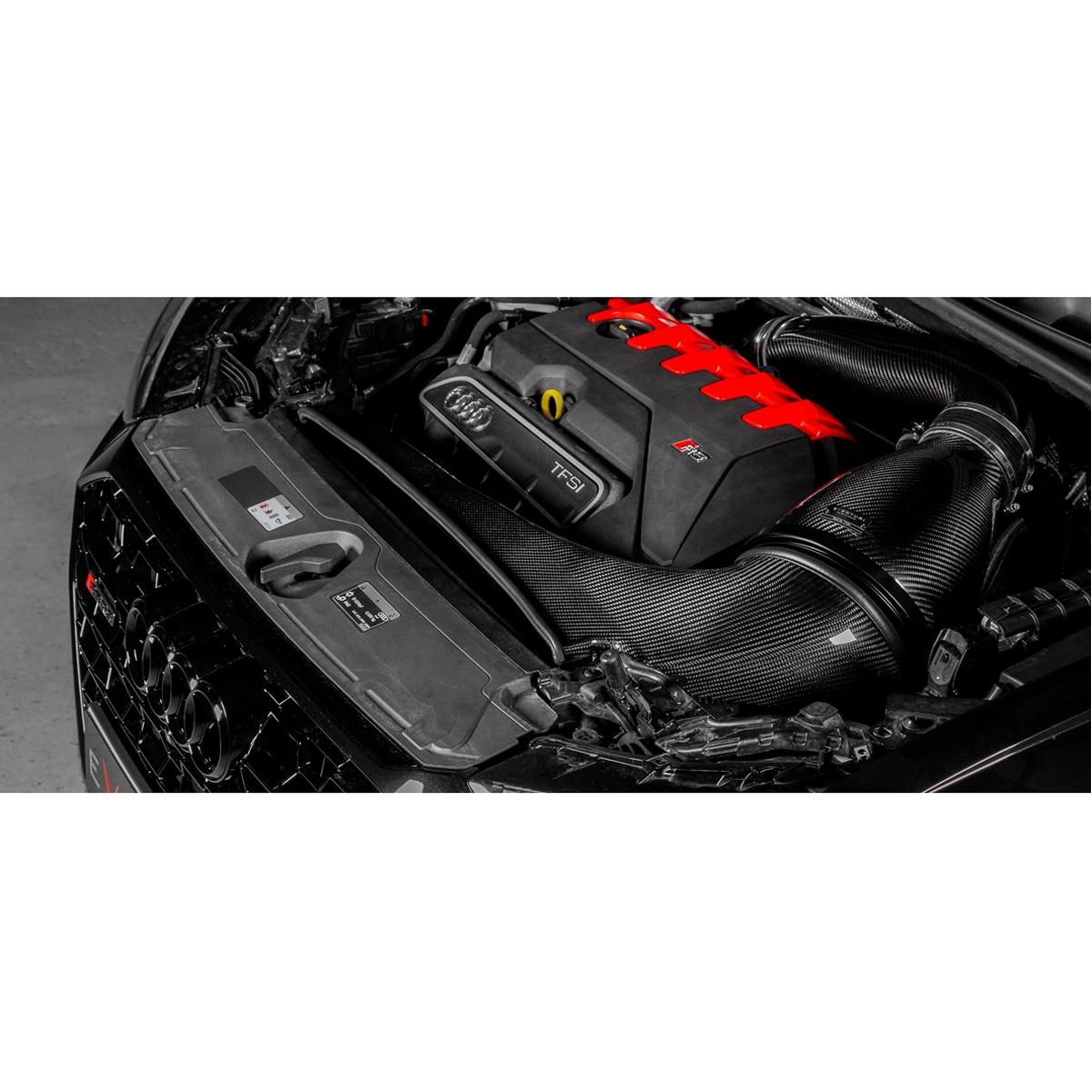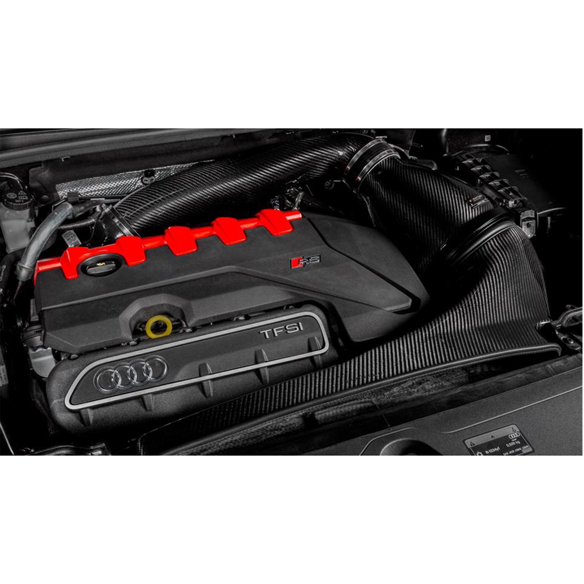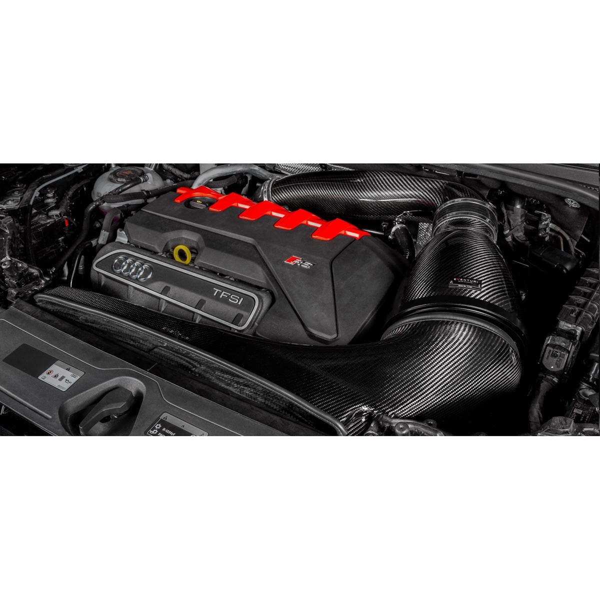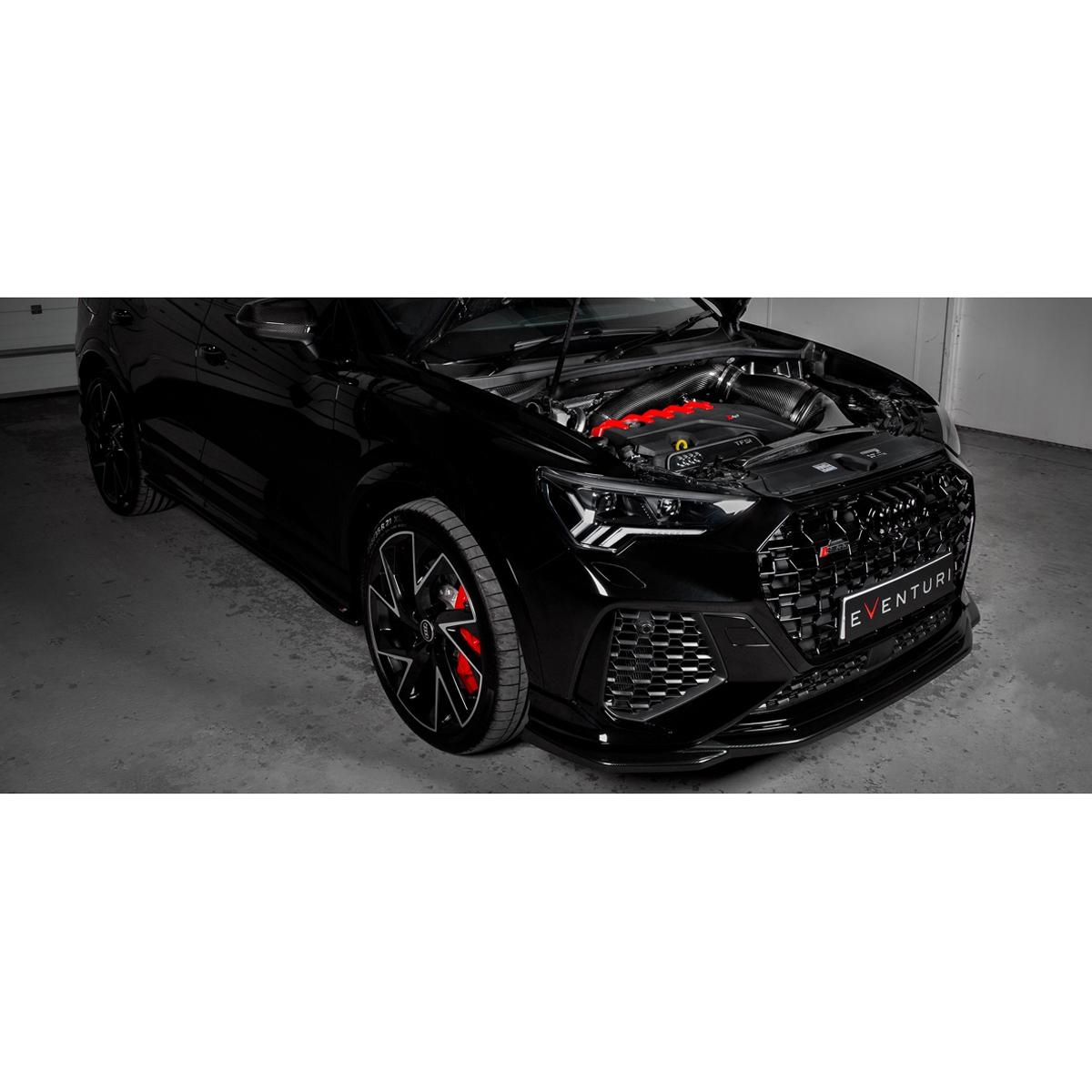 F3 RSQ3 Eventuri-systemet bruger deres patenterede huse i kulfiber, som giver en aerodynamisk effektiv luftstrømsvej fra filter til turborør. Ikke bare et almindeligt keglefilter med varmeafskærmning, men et unikt design som anvender Venturi-effekten. Du kan læse mere om husets design og hvordan det virker HER