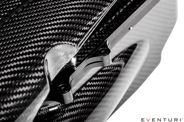En afgørende overvejelse ved brug af panelfiltre er at sikre, at de hele tiden er korrekt forseglede inde i luftkasserne. Da Eventuri bruger prepreg kulfiber til luftkasserne, kunne Eventuri ikke stole på den relativt store tolerance ved kulfiberkonstruktion i forhold til en præcisionsbearbejdet komponent. Derfor designede Eventuri flangerne CNC-fresede fra et enkelt aluminiumsstykke og sortanodiserede, hvori filtrene placeres. Disse flanger monteres inde i kulfiberluftkasserne og giver en pålidelig og præcis forsegling omkring gummiprofilen på filtrene.